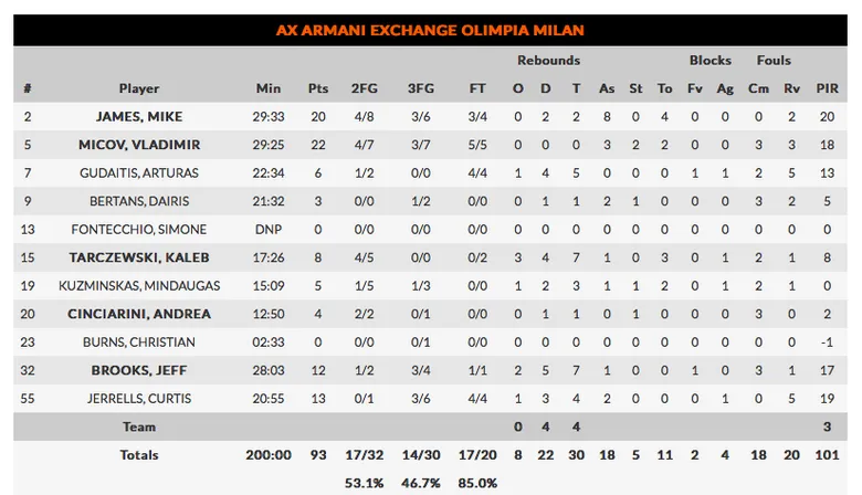 1. Un Milan inspirado y sólido. X6 victorias en 8 partidos de Euroliga confirman que este Milan va muy enserio. Hoy frente a un Baskonia dolido han sacado a pasear su tiro de tres, 14/30 frente a los 8/23 de los vitorianos. Seis jugadores han sumado desde esta línea y cuatro de ellos han anotado tres triples, Los mejores James 20 puntos y 8 asistencias y Micov 22 puntos. No bajaron en ningún momento los brazos y el Baskonia fue incapaz de revertir el partido.