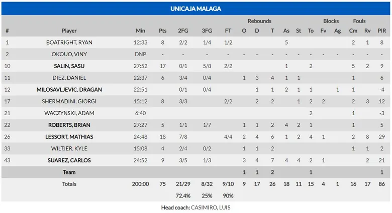 Shermadini continuó con su buen momento de juego en el último periodo, pero el Unicaja seguía sin poder defender los triples alemanes, sobre todo a Siva y Giffey. Anotaba Boatright de tres (65-73, min 33), pero era rápidamente respondido por un Alba que no daba su brazo a torcer en ningún momento, con Siva liderando su ofensiva (15 puntos y 10 asistencias). Luke Sikma adelantó con un triple a los de Aíto (74-73, min 37), y los de Casimiro, al igual que les ha ocurrido en otros partidos en esta Eurocup, se vieron atenazados por los nervios y no fueron capaces de enlazar buenas jugadas en el final del choque. En un último minuto fatídico, en el que Unicaja entró con ventaja (74-75), los alemanes aprovecharon su enorme superioridad en el rebote, y cazaron dos nuevos rechaces ofensivos para tomar una ventaja definitiva (79-75). El Unicaja, una vez más, volvió a desperdiciar una importante renta y esta vez lo pagó con su eliminación de la competición europea. Pasa a semifinales el Alba de Berlín, cuyo basket ofensivo le da serias opciones de levantar el título.