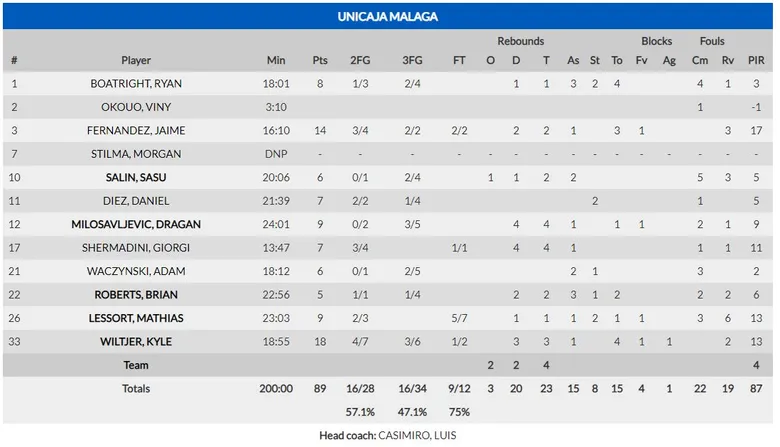Un milagro que Unicaja buscó, con Jaime Fernández y Lessort anotando para reducir, por primera vez desde el segundo cuarto, la decena de puntos de diferencia (81-72, min 32). Los de Luis Casimiro habían subido mucho la intensidad, pero no era suficiente, pues Ojo seguía haciendo daño en la pintura y Ragland con sus penetraciones y triples (92-83, min 37). Luis Casimiro bajó los brazos y prefirió guardar energías para otros partidos más trascendentes, sentando a Jaime a pesar de sus 14 puntos en apenas 16 minutos. Una nueva canasta del base americano prácticamente sentenció el partido (99-86, min 39). El altísimo marcador final, 105-89, refleja lo que ha sido un partido sin tensión entre dos equipos con su futuro ya decidido en Eurocup, pero que refleja carencias defensivas que Unicaja deberá solucionar si quiere llegar lejos en todas las competiciones.