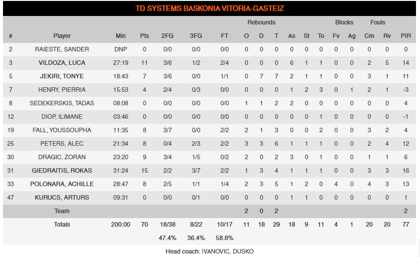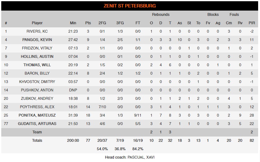 El mejor del partido fue sin lugar a dudas Kevin Pangos. El base formado en la universidad de Gonzaga dominó el encuentro y trasladó las intenciones de Xavi Pascual a la cancha de forma sublime. El ex del Barcelona se marchó rozando el doble-doble; con 9 puntos y 10 asistencias. Si a esto le sumamos la irrupción de un fantástico Alex Poythress una vez más, la sociedad es infalible.