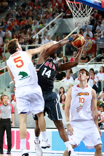 Estados Unidos convertía canastas no por superioridad física sino por muchos despistes defensivos concedidos por España. Navarro con un triple en contraataque dejaba de nuevo en diez la renta (25-35). Un pase por la espalda de Gasol a Claver ocupando la posición de cuatro, un triple desequilibrado de Navarro y un mate de Marc Gasol era lo más destacado de una España que comenzaba a despertar en ataque y forzaba al técnico norteamericano a pedir un nuevo tiempo muerto (31-40).