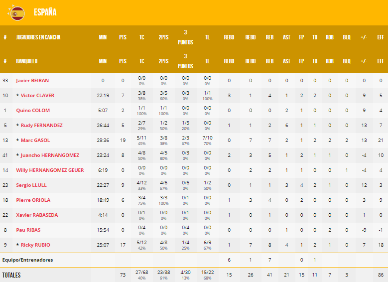 3. Más defensa y tiro exterior. En el apartado negativo, la selección española no hizo buen trabajo en el apartado defensivo, al permitir a Puerto Rico engancharse al partido y tener opciones hasta los últimos minutos. Además, la efectividad en el tiro exterior fue casi inexistente, con solo un 13 % de acierto, que hizo depender al equipo demasiado de los puntos en la pintura y que ante equipos con mejor defensa hubiera condenado a los de Scariolo a la derrota. Estos son los aspectos a mejorar ante un previsible duro choque en la siguiente ronda.