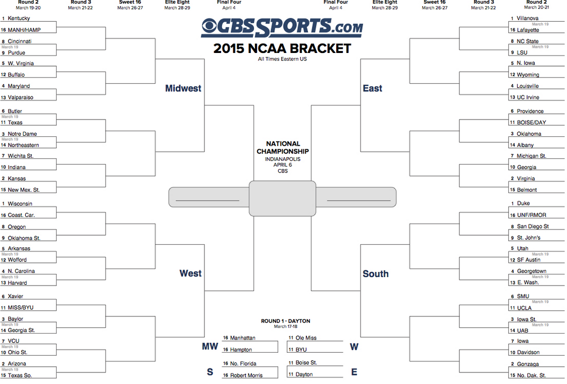 Los enfrentamientos, fechas y sedes han quedado de la siguiente manera (En negrita los equipos campeones de su conferencia. y en cursiva los invitados en el Selection Sunday):