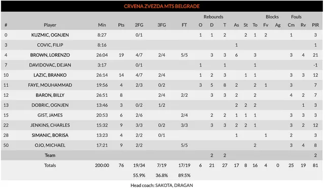 El partido comenzó según el guión previsto. Partido a pocos puntos, con defensa férrea y ritmo lento pero aprovechando las contras. Esto es lo que mejor saber hacer Estrella Roja y con este planteamiento han puesto en apuros a equipos como Real Madrid o Fenerbahce.