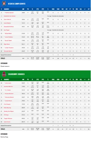 Sin aliento, pero sin dejar de creer: el partido fue tremendamente agotador para un Casademont Zaragoza que veía como a la baja ya conocida de Seibutis se sumaban tanto Justiz como San Miguel en el primer cuarto y la rotación de Porfi Fisac se veía muy reducida con aún 30 minutos por delante. Pudieron aguantar hasta después del descanso sin excesivos problemas pero en las segunda parte ese cansancio se iba acumulando y veían como Besiktas se llegaban a poner por delante en varias ocasiones, incluso a falta de 11 segundos, pero este equipo ya nos demostró la pasada campaña que no se rinde hasta que el tiempo no se acaba y con una jugada un tanto pardilla por parte de Batuk (todo hay que decirlo) lograban sacar una victoria que costó sudor y lágrimas.
