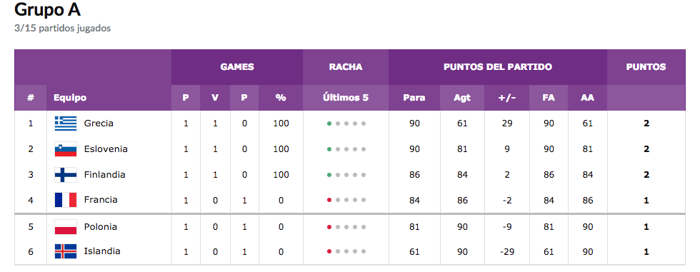 Ya lo contabamos en la Guía del Eurobasket 2017, el grupo A es posiblementemente el más disputado del campeonato. La victoria de Eslovenia a Polonia 90-81 con un estratosférico Goran Dragic (30 puntos, record anotador con la selección) establecía el comienzo del Eurobasket. Para comenzar la tarde, Islandia caía de forma contundente contra Grecia con el resultado de 61-90 a pesar de los 21 puntos de Haukur Palsson. En el último partido de la jornada, se daba la derrota francesa frente a los finlandeses liderados por el jugador más joven de la plantilla, Lauri Markkanen que se coronaba con 22 puntos y 7 rebotes.