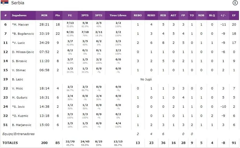 - Serbia hubiera sido un digno ganador: Y no solo porque todo su campeonato fuera muy meritorio, llegando a la final a pesar de ser el equipo con mayor número de bajas importantes (Teodosic, Nedovic, Kalinic, Bjelica y Jokic es un quinteto que hubiera sido favorito a todo). Tampoco porque jugaron la final casi sin poder contar con su base titular, Jovic. Si no porque demostraron tener ese carácter ganador serbio, como lo tenía la antigua Yugoslavia. Bogdan Bogdanovic es un digno sucesor de los Danilovic y compañia, y por momentos parecía que podía dominar la final. Jugadores menos dotados como Bircevic aparecieron, Lucic siguió demostrando que no tiene mucho que envidiar a Kalinic y Macvan dio una lección de inteligencia y de ese gen ganador, que a puntos estuvo de darles el título. Muy a tener en cuanta también la dirección de Djordjevic, que por momentos parecía que iba a ser el heroe con su dirección sobria por momentos y arriesgada por otros, pero se encontró enfrente con unos jugadores con un corazón como él que mostraba cuando jugaba..