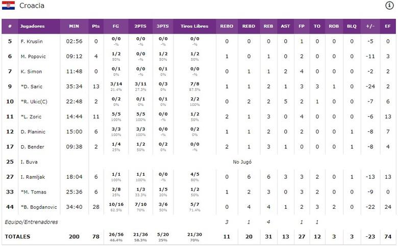 - El horrible partido de Saric penaliza mucho a Croacia: Los croatas basan todo su juego en la aportación de Bojan Bogdanovic y Dario Saric. El alero de los Pacers cumplió como siempre con 28 puntos, pero tuvo que hacer la guerra en solitario esta vez. Al inicio del último cuarto Saric llevaba -2 de valoración, producto de un desastroso tercer cuarto en que no ganó la partida a la defensa rusa ni una vez. Se esperaba que este fuera el campeonato de Saric, por su gran campaña NBA, luchando por el título de rookie del año, y por su gran nivel en los partidos de preparación, pero tras un torneo irregular aunque con momentos brillantes, su actuación queda bastante marcada por este horrible partido en el momento clave.