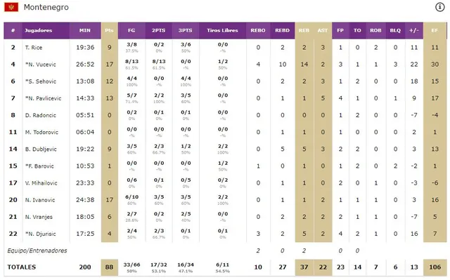 Concurso de triples. El partido se rompió al inicio del tercer cuarto, período que los jugadores se tomaron como si de un All Star se tratase, organizando su propio concurso desde 6’75. Antes de llegar el minuto 5’ el resultado del show era 3-6 para Montenegro, y con la ventaja de 13 que traía del paso por vestuarios ésta se convirtió en definitiva, al superar los +24 de diferencia. Como muestra un botón, porque otra de las claves para el resultado final fue el porcentaje de tiros: los checos tuvieron un 38% en TC por un 50% de los montenegrinos. En triples, Sehovic firmó un 4 de 4, Ivanovic y Pavlicevic 3 de 5, y Rice se sumó a la fiesta con 3 de 6. Palyza, con 3 de 7, fue el mejor de los checos.