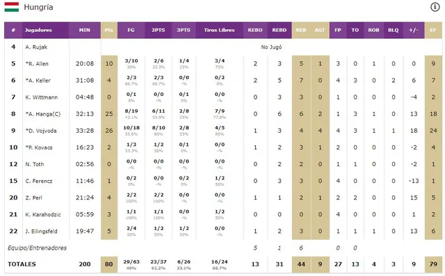 David Vojvoda, el catalizador de la intensidad húngara: Hungría comenzó un tanto dubitativa el partido, con un Hanga menos inspirado que en la jornada anterior, hasta que Vojvoda tomó las riendas y empezó a desatar su energía. Todos los parciales positivos de los húngaros llegaron de la mano del escolta, que además contagiaba a sus compañeros y conseguía despertar el mejor baloncesto de los de Stojan Ivkovic. Terminó el encuentro como el máximo anotador, y siendo una de las claves del encuentro.
