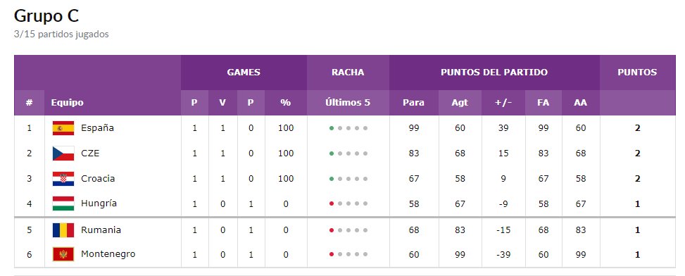 Primera jornada de este grupo y, de momento, ninguna sorpresa. En el primer partido, Hungría y Croacia han jugado un partido a pocos puntos del que ha salido ganador el conjunto croata con un gran Bogdanovic. En el segundo, España ha destrozado a Montenegro gracias a un espléndido partido coral y, por último, la República Checa de Satoransky ha batido a la cenicienta del grupo y anfitriona con facilidad.