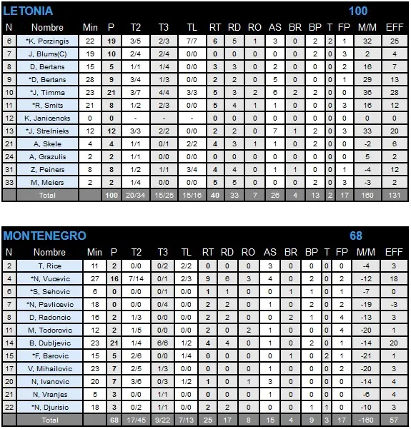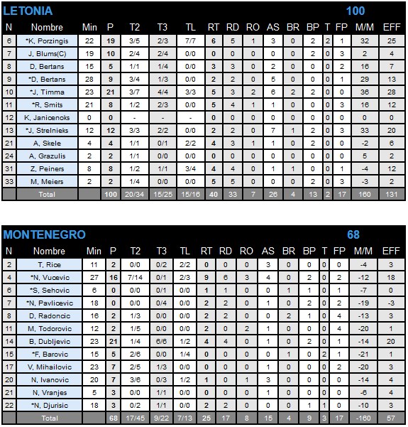El rebote marca la diferencia: 40 rebotes de Letonia frente a 25 de Montenegro, ahí ha estado la gran diferencia del partido. Si das el control de la zona a un equipo como el letón, acabará aplastándote, y eso ha sido lo que le ha sucedido a Montenegro.