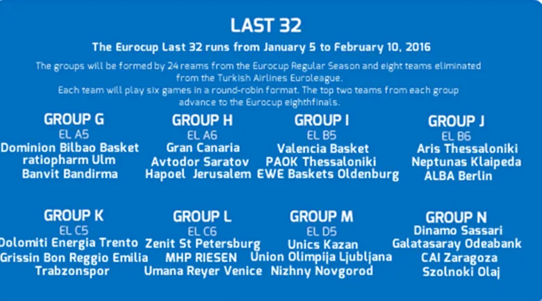 Todavía con un puesto en juego, el Union Olimpija logró el pase al Last32 en el último suspiro, merced a dos tiros libres de Sasa Zagorac (23 puntos) que le dio la victoria al equipo esloveno en cancha del EWE Baskets (75-77). Este resultado hizo estéril la victoria del JSF Nanterre en cancha del Telekom Bonn por 85-96 en un choque en el que entre Gerald Robinson (24 puntos y 8 asistencias) y Mykal Riley (26 puntos) sumaron 50 puntos para los galos.
