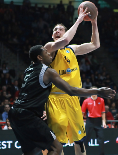 Tensión desde el inicio en esta segunda semifinal. Bizkaia Bilbao Basket planteaba una defensa al límite, liderados por un motivadísimo Jerome Moiso. El galo era un muro infranqueable para Sekulic y en ataque se iba hasta los 6 puntos en pocos minutos. Alba Berlin no es, sin embargo, un rival que se venga a abajo a las primeras de cambio. Los de Pavicevic se fueron asentando en la cancha. Los berlineses llegaron al final del primer cuarto con igualdad en el luminoso (18-18) y empezaron a marcar diferencias en los primeros minutos del segundo periodo (31-22, min. 14).