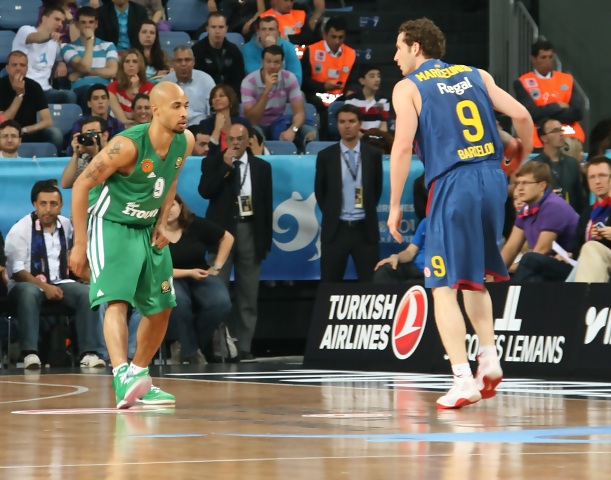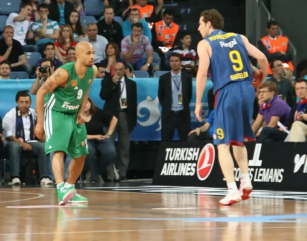 El primer tiempo fue completamente del Barcelona, que jugó fuera de las ataduras habituales del sistema de Pascual, más directos hacia el aro y con acierto exterior. Esto venía propiciado también por la lógica falta de tensión que conlleva un partido que Sarunas Jasikevicius –ausente hoy junto con Navarro– calificó como “innecesario”. Prueba de ello es el quinteto que sacó Obradovic con Calathes, Perperoglou, Logan, Smith y Vougioukas. Marcelinho estaba mágico, anotando 19 puntos en el primer tiempo y dando una ventaja al descanso de 11 puntos.