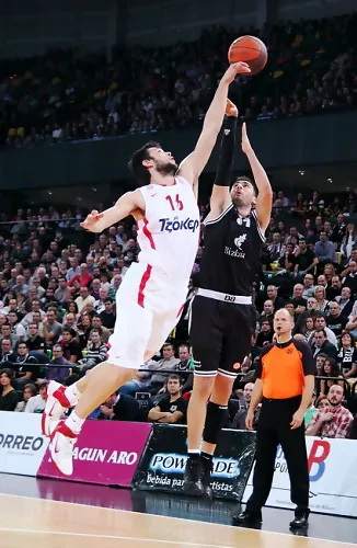 Spanoulis tenía el tempo, mientras Baskonia en menos de diez minutos ya lo había intentado con tres bases diferentes. V-Span generaba en 1×1 y 2×2 y además acumulaba en el primer cuarto dos triples en carrera. Powell era el que hacía daño ahora con 8 puntos seguidos y los griegos se iban a 10 ante un equipo azulgrana que no encontraba el rumbo, a lo que hay que sumar las numerosas segundas opciones que concedía. El Baskonia respondía por fin al final del segundo cuarto con la chispa de Heurtel que el solo conseguía un 7-0 para colocarse a 3 puntos. Hines respondía rápido con un 0-4 jugando de cara. Un triple de Sloukas sobre la bocina devolvía los 10 puntos ante un equipo que sólo encontraba en Heurtel una punta de lanza. Al descanso los griegos tenían una cómoda renta de 7 puntos.