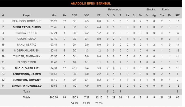 ANADOLU EFES ISTANBUL 69-73 ZENIT ST PETERSBURG