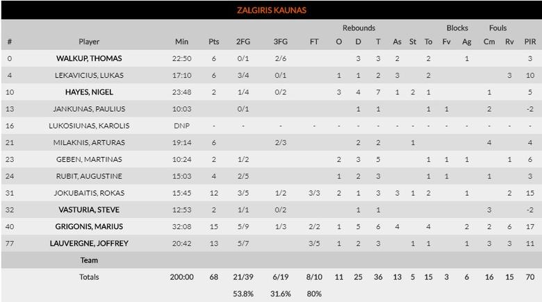 El segundo partido también se saldó con una sorpresa. Es cierto que son dos equipos por hacer, especialmente Zalgiris, pero a priori se espera más de los de Bartzokas con la vuelta de Sloukas y buenos fichajes como Harrison o Martin. Pero el retorno del hijo pródigo no fue el deseado, ya que además de su flojo partido (6 de valoración) se vio superado por un jovenzuelo descarado con el clásico talento lituano a lo largo del último cuarto y no fue capaz de levantar el balón en la última jugada para intentar el tiro ganador. Rokas Jokubaitis batió sus récords personales con 12 puntos, 3 rebotes, 3 asistencias y 15 de valoración en tan solo 15:45 minutos pero es que además anotó 5 de los últimos 8 puntos de su equipo para ponerse por delante y cerrar el partido anotando los dos libres definitivos. Habrá que seguir muy de cerca a este joven exterior, que remató un partido en el que el mejor fue el ex ACB Marius Grigonis, bien acompañado por otro ex como Lauvergne.