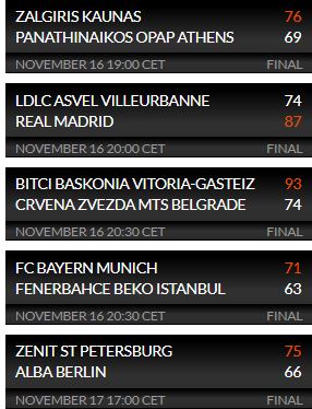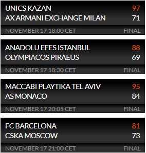 La sorpresa de la jornada la da el UNICS Kazan, que hizo servir una defensa intensa y una buena eficiencia desde el prímetro para pasar por delante de un equipo que venía siendo uno de los dos mejores del continente. Para registrar un 5-5 de balance el equipo ruso tuvo que empatar su récord de triples anotados en un partido, con 14. Milan cortó su racha de victorias en tres y registra un 8-2.