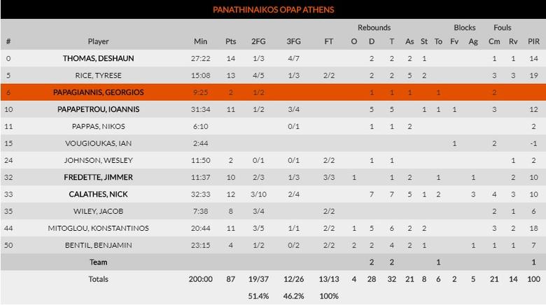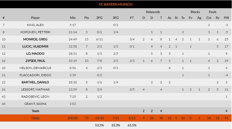 Los alemanes comenzaron dominando el partido con un gran Greg Monroe para un 24 a 16 en el primer cuarto, pero luego se vinieron abajo a pesar del gran partido de Paul Zipser. Panathinaikos realizó un gran partido coral con hasta 6 jugadores por encima de la decena en valoración y en anotación, mientras esperan que Rick Pitino vuelva a sentarse en el banquillo en partido oficial.