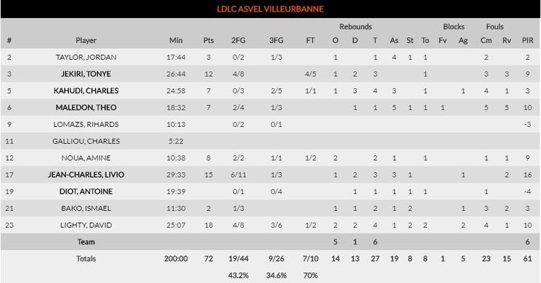 LDLC ASVEL VILLEURBANNE 72-88 FENERBAHCE BEKO ISTAMBUL