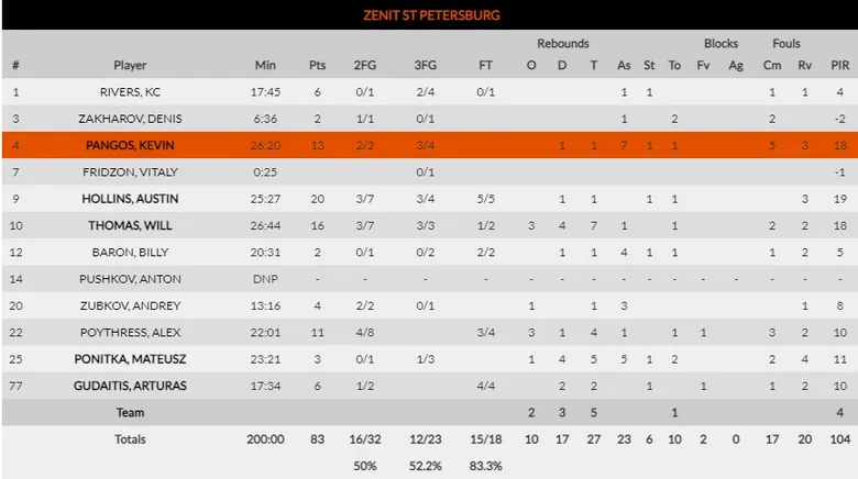 El equipo de Xavi Pascual sigue imponiendo su defensa y mantuvo a Zalgiris por debajo de la veintena en los tres primeros cuartos. Los rusos juegan a un ritmo bajo y controlan el juego con la dirección de Kevin Pangos, que sumó 13 puntos y 7 asistencias. Austin Hollins fue el ejecutor exterior, siempre bien respaldado por el trabajo en la zona de Will Thomas y Alex Poythress, además de la intendencia de Ponitka y Gudaitis. Zenit ya suma 6 victorias por solo dos derrotas, al ganar esta semana también a Baskonia en uno de sus partidos reprogramados.
