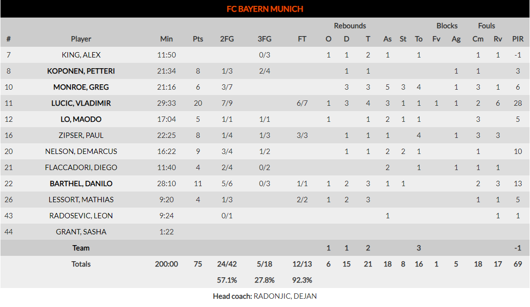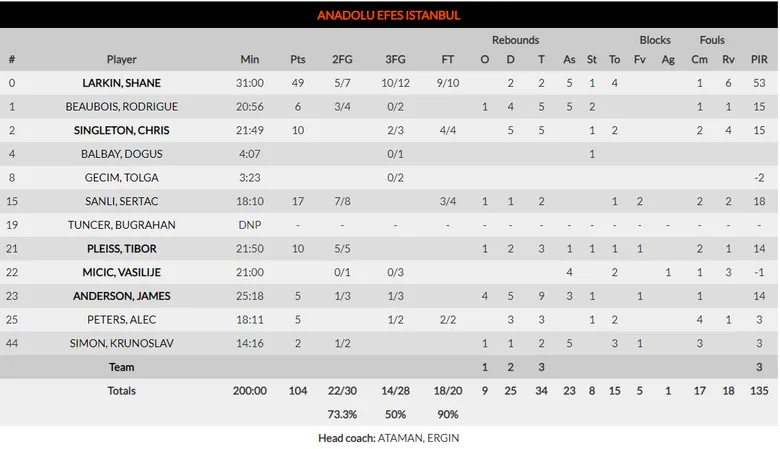 En el mejor partido de la carrera de Shane Larkin, el base del equipo otomano estuvo monumental en la victoria cómoda frente al Bayern con una actuación monstruosa de 49 puntos, 10/12 en triples, 5 asistencias y 53 de valoración. Récord de más puntos anotados en un partido de Euroliga, récord de más triples anotados en un partido de Euroliga y el pabellón coreándole con gritos de MVP.