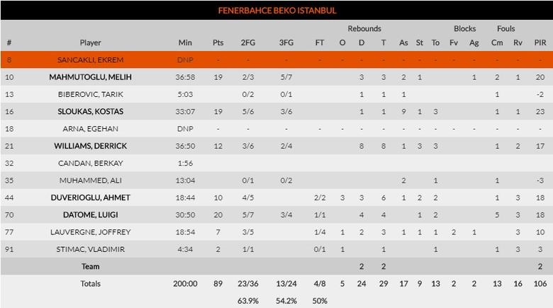 Los de Obradovic encadenan su segunda victoria consecutiva contra un Khimki que notó la baja de Alexey Shved y que encadena su tercera derrota consecutiva. Fenerbahce también tenían ausencias importantes como Kalinic y Vesely pero lo solventaron dando muchos minutos a sus jugadores importantes en el día de hoy. Mahmutoglu, Sloukas, Williams y Datome superaron los treinta minutos y valoraron entre los 17 del americano y los 23 del base griego. Timma hizo de sustituto de Shved con 26 puntos pero un 5 de 14 en triples.