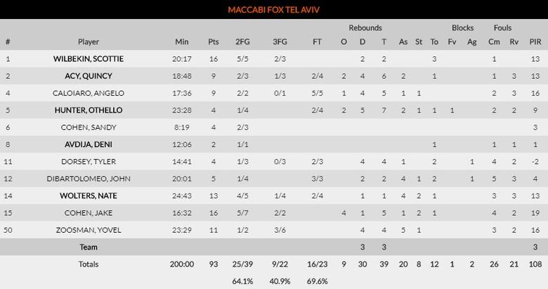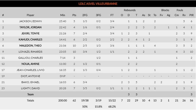 MACCABI FOX TEL AVIV 93-62 LDLC ASVEL VILLEURBANNE