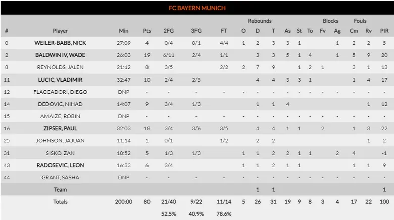 Nick Weiler-Babb sentenció una nueva victoria de Bayern al anotar dos tiros libres tras coger el rebote ofensivo de un tiro fallado de Sisko. En la jugada anterior Alexey Shved falló el triple que hubiera puesto a Khimki por delante y los rusos dejaron a los alemanes consumir la posesión completa que coincidía casi con el reloj del partido. Los de Kurtinaitis siguen colistas con tan solo dos victorias.