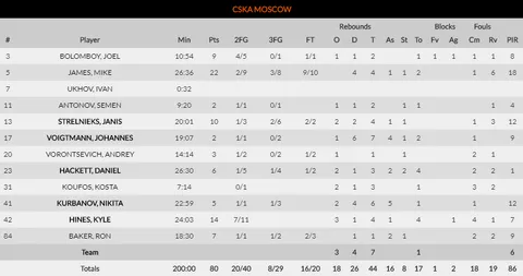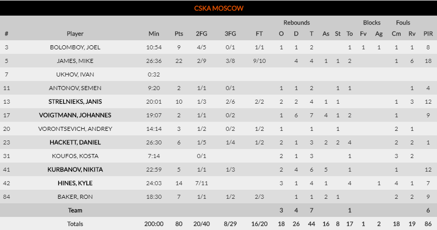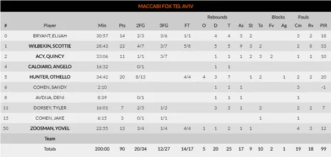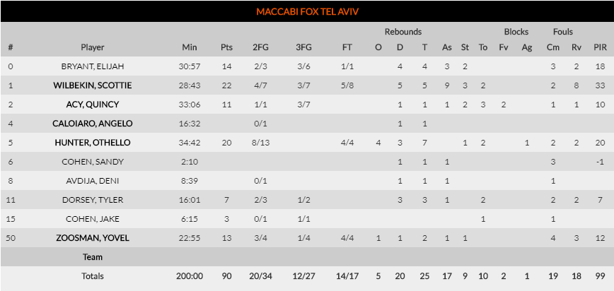 Maccabi, en la que ha sido otra noche más de altos tanteos y ritmo elevado -han metido menos de 75 puntos en 2 de 13 partidos- ha demostrado por qué están en el top 5 de la clasificación, y por qué Olympiacos está teniendo dificultades para hacerse con un hueco entre los 8 primeros. Y es que, por parte de los rusos, no puedes ganar con un 27% en 29 tiros de 3, 17 pérdidas, y 1 único tapón colocado. Mientras que los de Tel Aviv hicieron los deberes, y todo lo contrario. Una tremenda segunda parte -45 a 28-, un notable 12 de 27 desde el triple y, además, 2 jugadores por encima de 20 puntos y otros 4 con más de 7. Es decir, un equipo equilibrado. El más destacado fue Scottie Wilbekin, con 22 puntos, 9 asistencias y 33 de valoración.