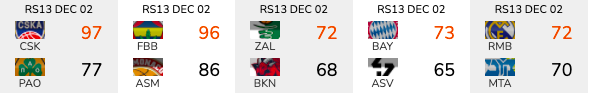 Alexey Shved mostró su mejor versión en la faceta de organizador y fue el culpable de que el CSKA se llevara el partido aun teniendo la enfermería llena. Con 17 puntos y 13 asistencias, igualando su ‘career-high’. Will Clyburn sigue demostrando su fiabilidad con 16 puntos, al igual que Semen Antonov, que fue la sorpresa con otros 16 tantos. El CSKA mejora su balance a un 8-5, mientras que el Panathinaikos sigue con su mala dinámica y encaja su décima derrota en trece jornadas, sin singuna victoria a domicilio por el momento.