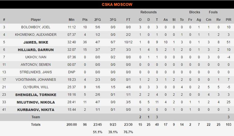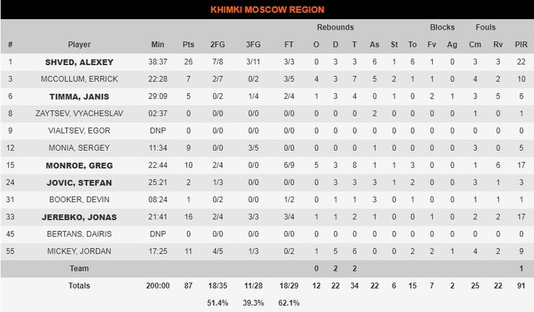 KHIMKI MOSCOW REGION 87-96 CSKA MOSCOW