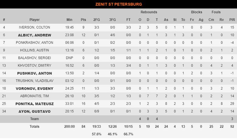 Un gran triple de Andrew Albicy tras tiempo muerto de Plaza dio la sorpresa de la jornada. Es cierto que Fenerbahce no es el que era esta temporada, pero Zenit compartía el último lugar de la clasificación con solo tres victorias en catorce partidos. Anteriormente había empatado Sloukas también con un triple lateral, pero los de Obradovic, además de su flojo nivel en esta temporada, no está teniendo suerte en los finales apretados, como en el triple con falta reconocida por la Euroliga contra Panathinaikos.