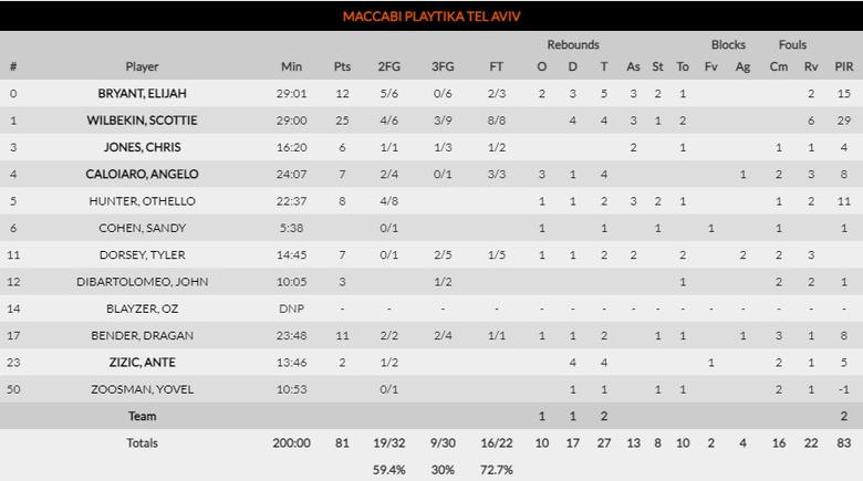 Flojo partido de Maccabi que se encomienda a la heroica de sus individualidades para intentar llevarse en los momentos decisivos pero no lo consigue. Esto ya lo hemos visto unas cuantas veces esta temporada y está claro que aúnque Wilbekin tuvo un triple para empatar, ya hace tiempo que no se puede considerar mala suerte. Los de Sfairopoulos ya están tres derrotas por debajo del último puesto de playoff.