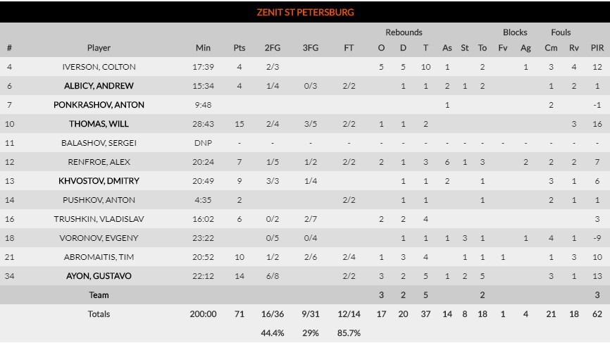 ZENIT ST. PETERSBURG 71-82 MACCABI FOX TEL AVIV