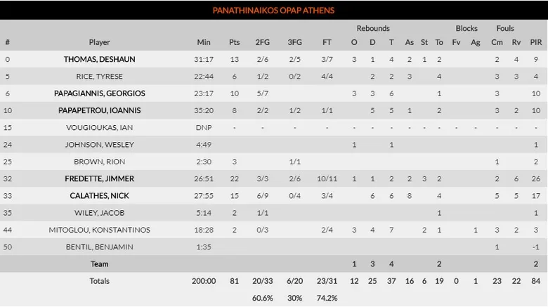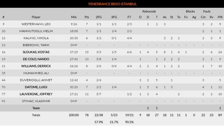 El partido no fue de una gran calidad pero si muy duro y competido, con Fenerbahce yendose al descanso con una ventaja de cuatro puntos pero atascándose en un tercer cuarto que fue decisivo (23-11). Thomas y Papagiannis realizaron un buen partido para los griegos, encontrando réplica en un De Colo no muy brillante y un Lauvergne muy productivo en sus minutos. Fredette aparte, lo mejor que se vio fue un igualado duelo entre los bases griegos estrella, con un Kostas Sloukas muy explotado por su entrenador (37:25), lo que le provocó algún error al final, y un Calathes dirigiendo y aportando en todo pero cediendo protagonismo en ataque. Panathinaikos se asienta en zona de playoffs mientras que a los de Obradovic cada vez se les pone más cuesta arriba la remontada.