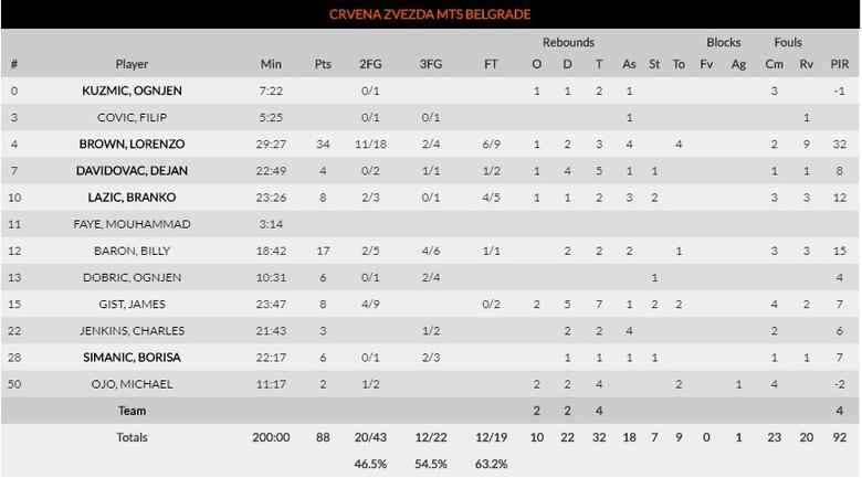 CRVENA ZVEZDA MTS BELGRADE 88-81 OLYMPIACOS