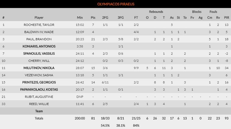 Los serbios volvieron a hacerse fuertes en casa con una actuación absolutamente descomunal de un jugador que ya se ha ganado un contratazo para la temporada que viene. Como nos contaba Carlos León, si su sueño NBA no lo impide, veremos a Lorenzo Brown en algún grande de la Euroliga el curso siguiente. Hoy se fue a 34 puntos, 3 rebotes, 4 asistencias, 9 faltas recibidas y 32 de valoración. Si no hubiera sido por la brutalidad de James, el MVP sería suyo. Billy Baron lo acompañó en la ofensiva con 17 puntos, haciendo estéril el nuevo doble doble de Milutinov de 15 más 11 para 34 de valoración. Printezis y Paul destacaron pero poco más mostró un Olimpiacos, en el que Spanoulis tendrá que esperar aún para superar el récord de Navarro y convertirse en el máximo anotador de la historia de la Euroliga.
