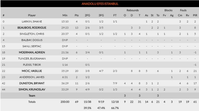 Había dudas sobre que partido podíamos ver dado el mal momento de forma de Anadolu y, tras un primer cuarto igualado, el parcial de 11 a 26 del segundo parecía que nos dejaba sin partido ya al descanso. Pero Ataman apretó a los suyos, reduciendo la rotación a siete jugadores y optando por dejar a Larkin en el banco, y con ese nivel de exigencia los turcos remontaron hasta tener el partido en franquicia. Vasilije Micic rindió como se espera y lideró a los suyos con 20 puntos, 8 rebotes y 5 asistencias, bien acompañado por el trabajo de Bryant Dunston.