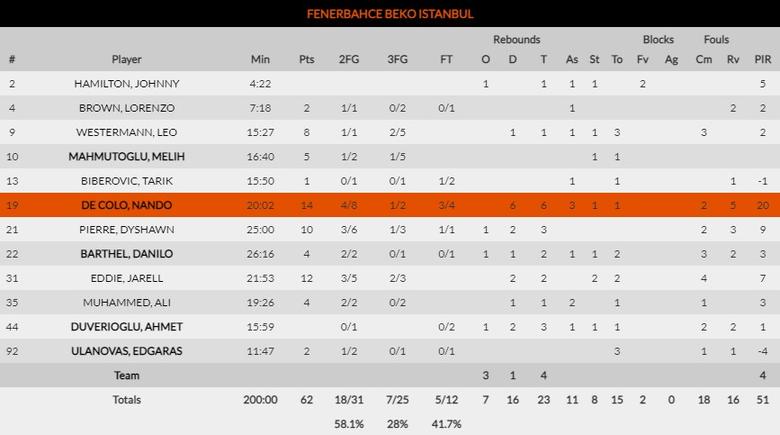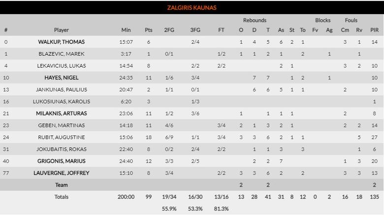 El partido no tuvo ninguna historia desde el principio. Un Zalgiris que ha recuperado el nivel de juego del inicio de temporada arrasó desde el minuto uno a un Fenerbahce que sigue penando por las canchas de la Euroliga a la espera de encontrar soluciones en fichajes como el de Marko Guduric. Los lituanos comenzaron el partido con un significativo 24 a 7 en el primer cuarto y manteniendo un gran ritmo anotador los dos períodos siguientes. Los de Schiller cimentaron otra vez su apabullante victoria en un magnífico porcentaje de tres con 16 de 30 y ya suman tres triunfos consecutivos, todos ellos con gran suficiencia. La racha de seis derrotas seguidas ha quedado atrás y se vuelven a meter de lleno en la lucha por los playoffs.