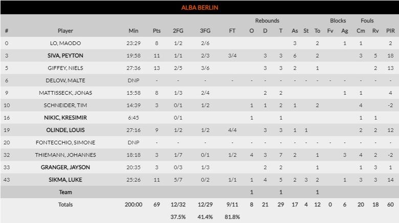 ALBA plantó cara en la primera parte, pero en la segunda sus rivales fueron aumentando la ventaja hasta llegar a un final sin opciones para los alemanes. Su 12 de 32 en tiros de dos fue decisivo en negativo.