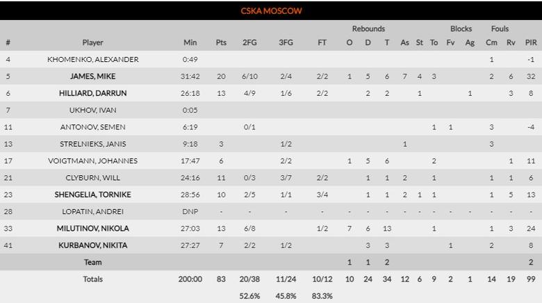 A pesar del gran inicio de temporada de los de Xavi Pascual el CSKA quiso dejar claro que hay mucha diferencia entre los dos equipos rusos, además de seguir ampliando su racha a 10 victorias seguidas. Los de Itoudis se quedan como líderes en solitario tras la derrota del Barça y están confirmando todas las expectativas que había con su plantilla tras las incorporaciones de Shengelia y Milutinov. Los dos interiores realizaron hoy un gran partido, sobre todo el pívot serbio, pero con una buena aportación del georgiano que sumó 13 de valoración para complementar el doble doble de 13 puntos y 13 rebotes del ex de Olympiacos. Pero el líder una vez más fue Mike James con un completo partido de 20 puntos, 6 rebotes, 7 asistencias y 4 robos para 32 de valoración. Kevin Pangos intentó plantarle cara pero James es ahora mismo el jugador más en forma de toda Europa.