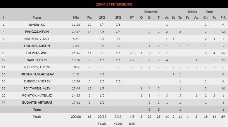CSKA MOSCOW 83-65 ZENIT ST PETERSBURG