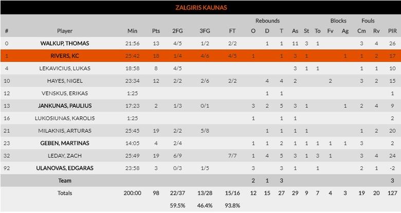 Los de Jasikevicius por fin volvieron a ganar tras nueve derrotas seguidas. Hoy parecieron otro equipo en ataque, ya que durante esa racha no alcanzaron los ochenta puntos en cuatro ocasiones, ni los setenta en tres. Contra el Bayern mostraron un juego fluido, coral y acertado que los llevo en progresión ascendente de los 21 puntos del primer cuarto a los 30 del último. Walkup, Leday y Milaknis lideraron superando la veintena en valoración, con Rivers, Lekavicius y Hayes a buen nivel. Por parte de Bayern, solo Barthel y Zipser mostraron algo de resistencia, destacando en negativo los 2 puntos y 2 de valoración de Greg Monroe.