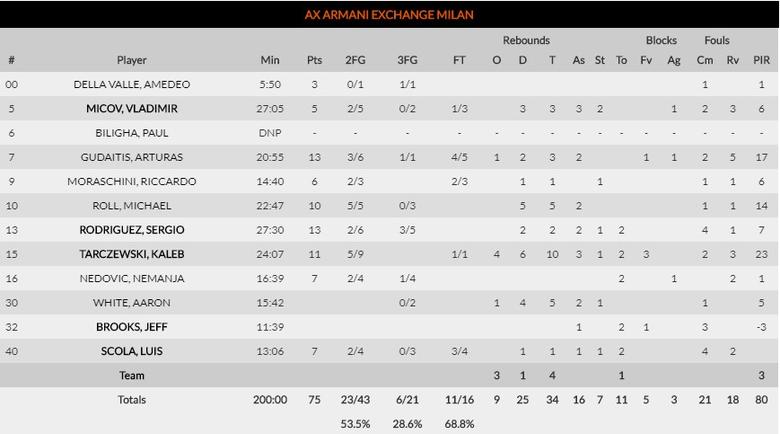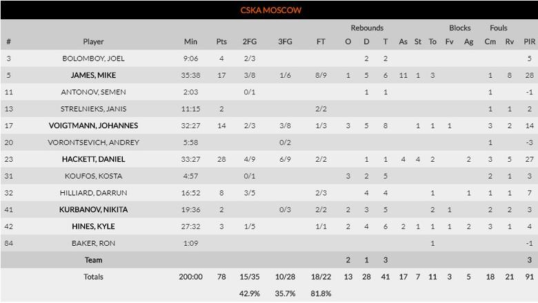 Milán llevó la iniciativa del partido en varias fases gracias a su juego interior, con Tarczewski y Gudaitis sumando 40 de valoración, y con la ayuda de un buen Michael Roll. Pero CSKA contó con un anotador inesperado en la figura de Daniel Hackett, que el decisivo último cuarto sumó 10 puntos de sus 28 totales, incluídos los últimos 7 de su equipo.