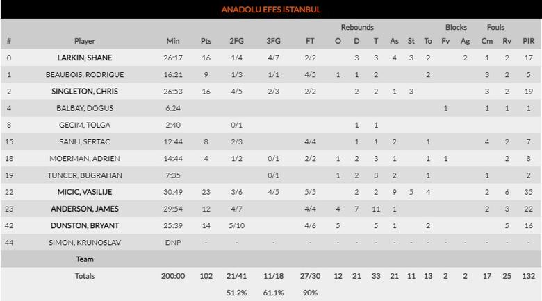 Un ASVEL sin Moustapha Fall no fue rival para un Anadolu, al que hoy le tocó uno de esos días en los que recordó al deslumbrante equipo de la temporada pasada. Un grandísimo Vasilije Micic lideró a los suyos con 23 puntos, buenos porcentajes, 9 asistencias, 5 robos y 35 de valoración. Shane Larkin también estuvo bien aunque sin tanto protagonismo (16 puntos y 17 de valoración), mientras que jugadores como Singleton, Anderson y Dunston rendía a gran nivel en el partido más fácil para los de Ataman esta temporada.