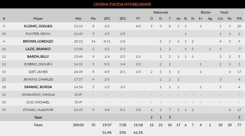 CRVENA ZVEZDA MTS BELGRADE 70-76 ZALGIRIS KAUNAS