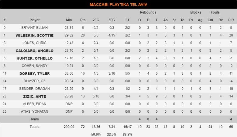 CSKA MOSCOW 76-72 MACCABI PLAYTIKA TEL AVIV