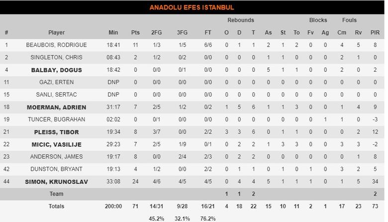 ANADOLU EFES ISTANBUL 71-80 FENERBAHCE BEKO ISTANBUL